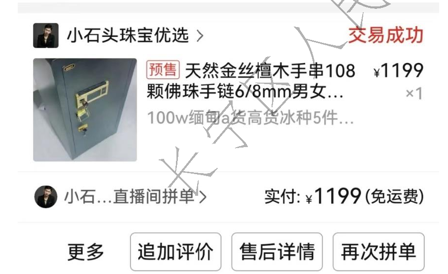 4)该商品链接图上面的文字展示要约,其包含的核心内容有:“100w缅甸A货高货…”——标的物(保险柜内),产地缅甸,品质A货高货,价值100ww-万的网络表达方式)(市场价、原价、被比较价格,也就是商品实际价值),价款1199元(售价)。这是对所有购买者都一样的格式条款。