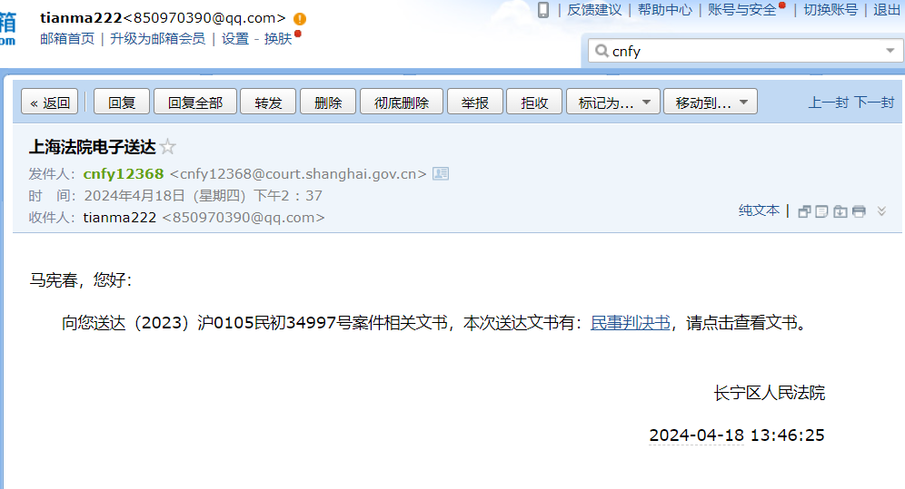 原告提交《法网》联系法官详情,留言信息:邓法官好:今天宣判没通知结果呢?留言时间:2024-04-15 18:45:28,回复信息:昨天是宣判庭口头宣判,书面文书将在十日内发送。回复时间:2024-04-16 09:24:10.    ||| 此回复书面文书将在十日内发送违法。执法违法,枉法欺骗成分存在。